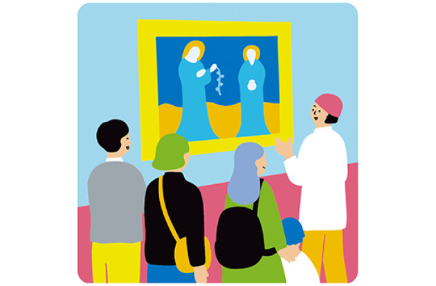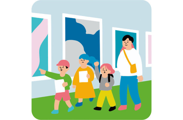 小学生以下の子どもと保護者を対象として、展示室内や美術館内で行う、対話による鑑賞プログラムです。みんなで探検しながら、美術館のふしぎを探しにいきましょう。