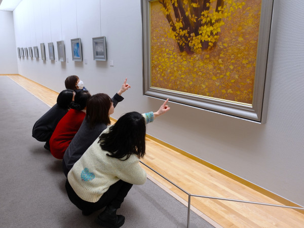 内容:交流スペースに集合し、ひらくツール「ふれるアートカード」を使って鑑賞前のウォーミングアップをおこないます。その後、アートラボや東山魁夷館でおしゃべりをしながら作品鑑賞を楽しみます。