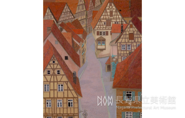 ドイツの町に取材した《窓》、《石の窓》、《静かな町》、連作「白い馬の見える風景」から夏の景色を思わせる《水辺の朝》、《草青む》など、ヨーロッパの風景に取材した作品を中心に展示します。