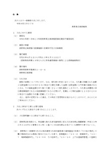 トピックス 2026年2月27日(金) 標記について、一般競争入札を実施します。入札参加申し込み期限は、令和8年3月13日(金)午後5時までです。詳しくは下記の資料をご確認ください。 ダウンロード・参考資料 01_入札説明書.pdf PDF File 312.22 KB 02_一般競争入札公告設備定期保守業務.pdf PDF File 182.07 KB 03_設備定期保守業務仕様書.pdf PDF File 540.63 KB 04_設備定期保守業務委託契約書(案).pdf PDF File 147.85 KB 05_設備定期保守業務設計書.xlsx 46.41 KB 06_設備定期保守業務基準表.pdf PDF File 669.23 KB 07_様式集(設備保守業務).docx WORD File 27.15 KB